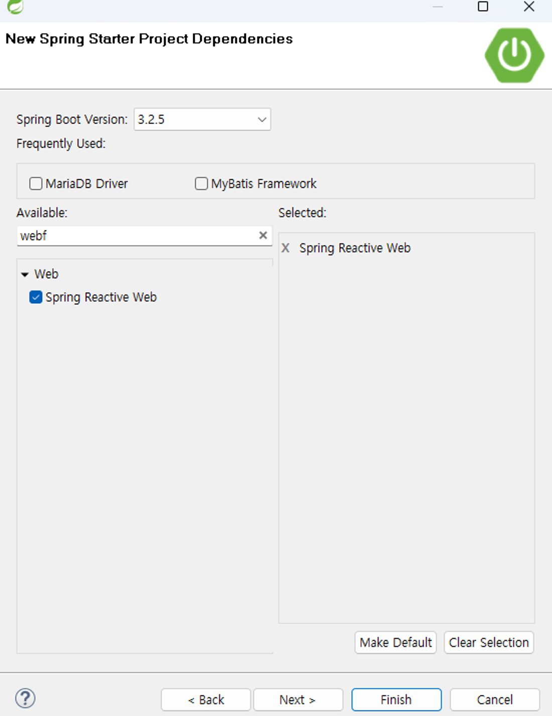 프로젝트 생성 시 라이브러리 설정 - webflux