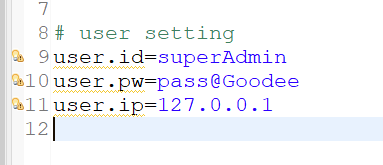# user setting user.id=superAdmin user.pw=pass@Goodee user.ip=127.0.0.1controller